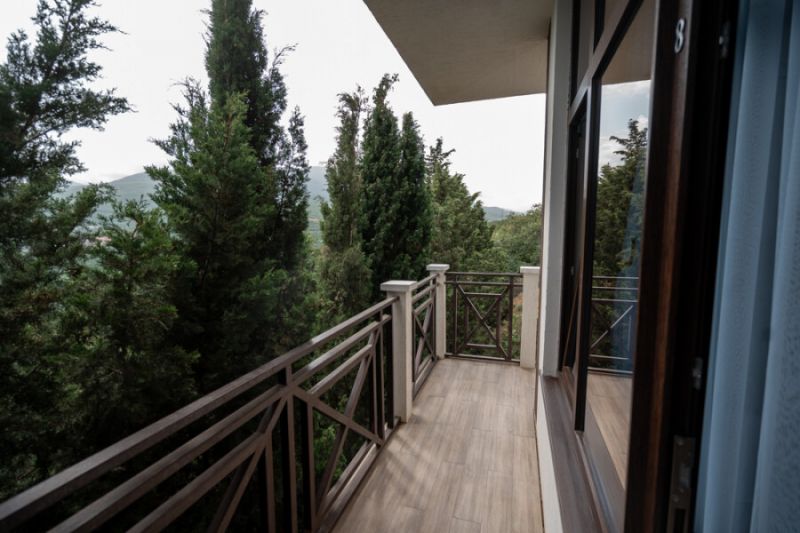 Достоинство расположения дома – великолепные виды на море, Алушту и окружающие её горы. Прекрасный пейзаж открывается из всех номеров и локаций гостиницы. Особенный уют, аромат и тень создают хвойные и плодовые деревья, окружающие дом. Закрытая территория обеспечит ваш комфорт и покой. Здесь будет удобно активным семьям с детьми и тем, кто хочет отдохнуть в тишине, по-домашнему.