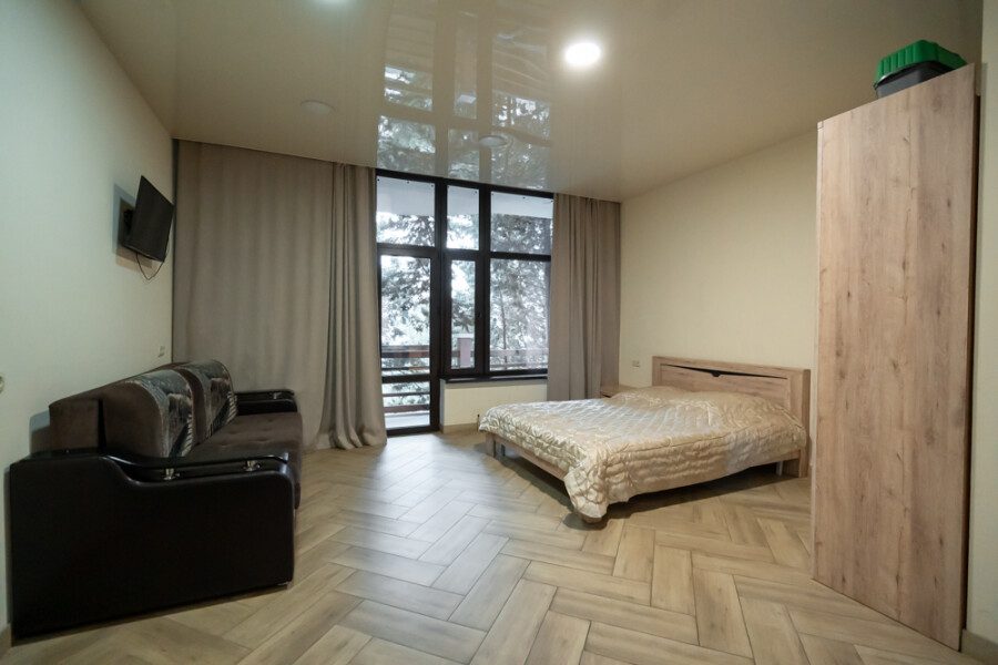 | Апартамент 2-местный 1-комнатный | 35 кв.м. | 2 чел. | Мебель (вешалка, диван, зеркало, кровать двуспальная, кухонная мебель, прикроватные тумбочки, стол,... | |