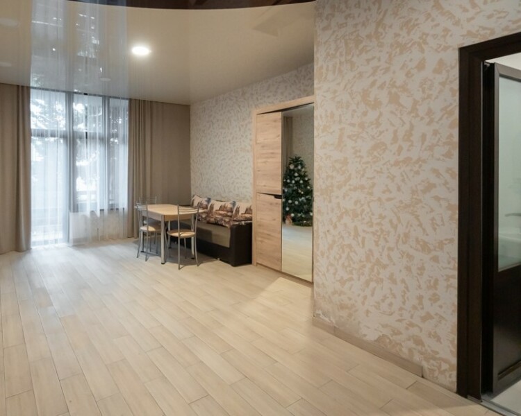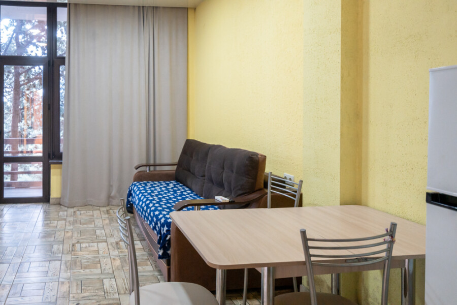 | Апартамент 2-местный 2-комнатный | 50 кв.м. | 2 чел. | Мебель (вешалка, диван, зеркало, кровать двуспальная, кухонная мебель, прикроватные тумбочки, стол,... | |